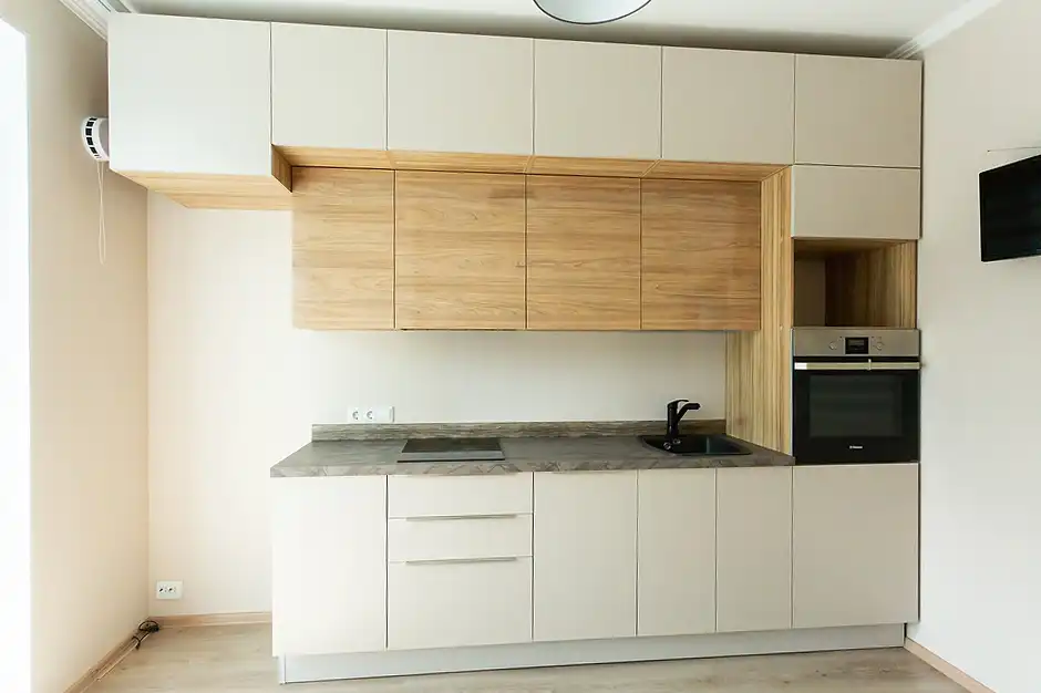 Что такое «базовая комплектация» кухонного гарнитура? Базовая комплектация - это распашные шкафы, без ящичных секций. Что входит: шкафы верхние и нижние, полки, вся необходимая фурнитура, крепёж, петли, ручки, ножки, цоколь. Если вы захотите оснастить кухню дополнительными выкатными и подъёмными механизмами, фурнитурой с доводчиками, остеклением, радиусными фасадами, подсветкой, ящиками в нижних секциях и пр. - то цена кухни может измениться.