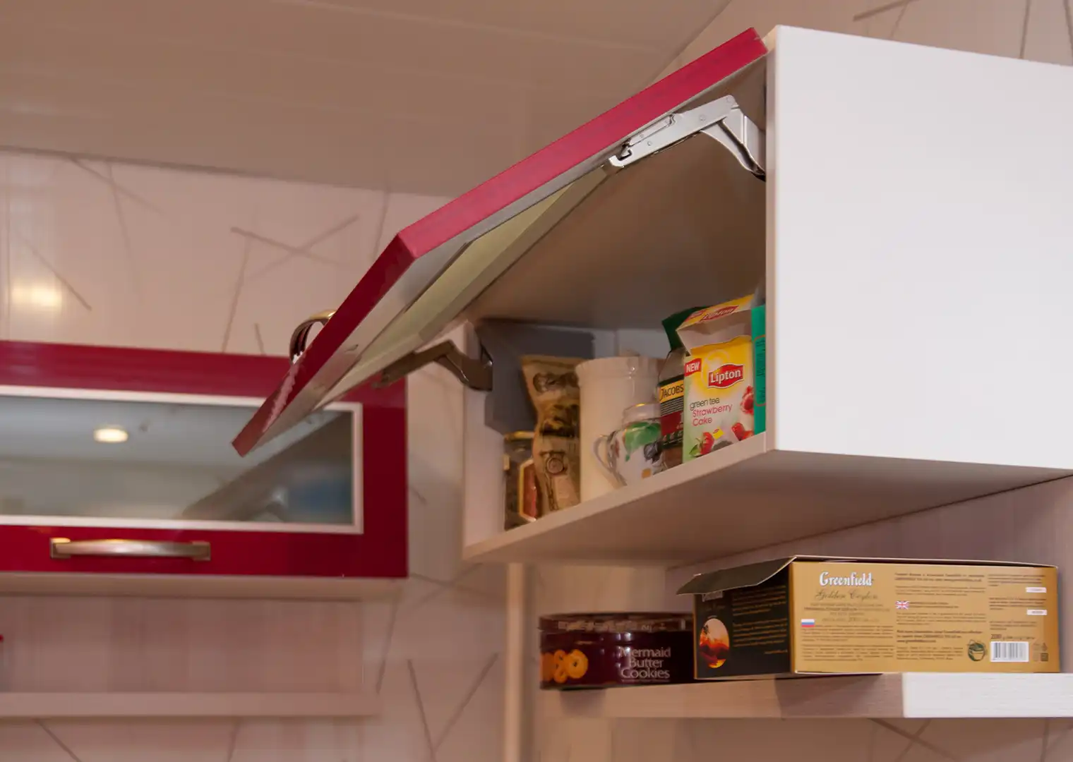 Что такое «базовая комплектация» кухонного гарнитура? Базовая комплектация - это распашные шкафы, без ящичных секций. Что входит: шкафы верхние и нижние, полки, вся необходимая фурнитура, крепёж, петли, ручки, ножки, цоколь. Если вы захотите оснастить кухню дополнительными выкатными и подъёмными механизмами, фурнитурой с доводчиками, остеклением, радиусными фасадами, подсветкой, ящиками в нижних секциях и пр. - то цена кухни может измениться.