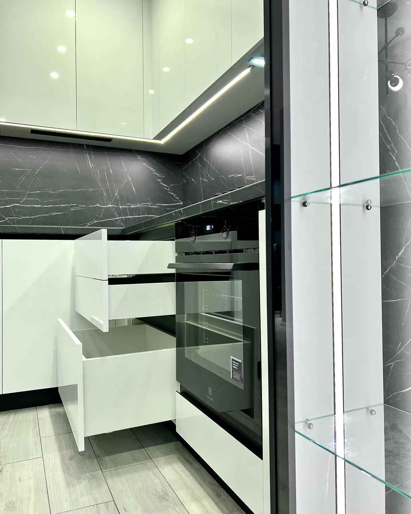 Что такое «базовая комплектация» кухонного гарнитура? Базовая комплектация - это распашные шкафы, без ящичных секций. Что входит: шкафы верхние и нижние, полки, вся необходимая фурнитура, крепёж, петли, ручки, ножки, цоколь. Если вы захотите оснастить кухню дополнительными выкатными и подъёмными механизмами, фурнитурой с доводчиками, остеклением, радиусными фасадами, подсветкой, ящиками в нижних секциях и пр. - то цена кухни может измениться.